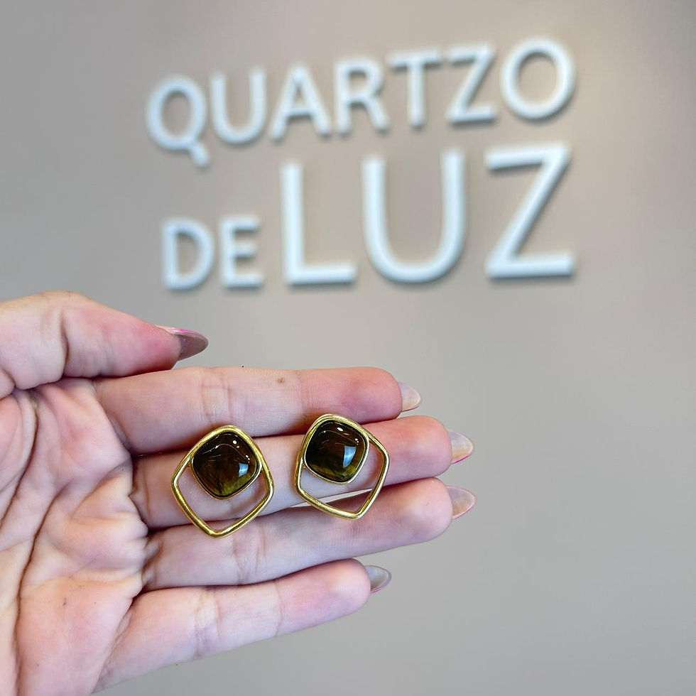 BRINCO QUADRADO VAZADO OLHO DE TIGRE - PROTEÇÃO E DETERMINAÇÃO