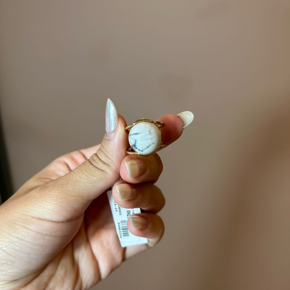 Anel Regulável Redondo P Alto Howlita-Paz,Paciência, Equilíbrio das emoções