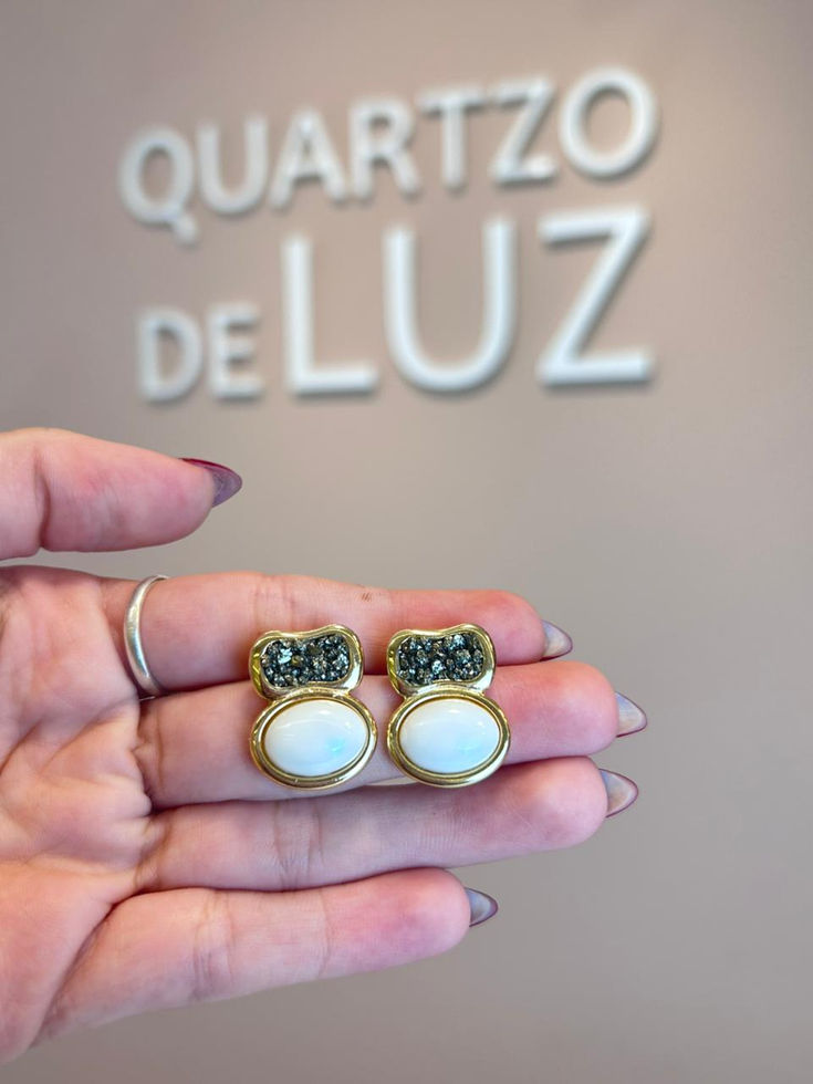 Brinco Duplo Oval Porcelana Perolada e Pirita