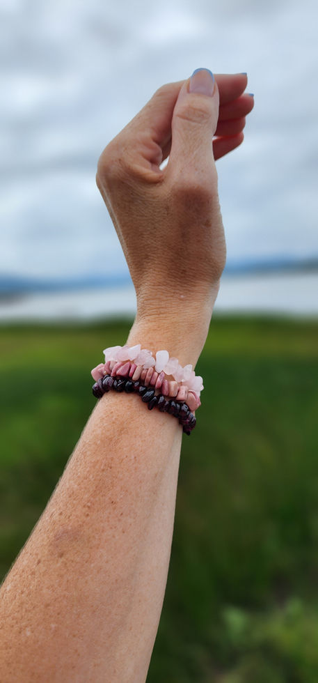 * 1 Pulseira cascalho Quartzo Rosa: Amor incondicional, amor próprio, compaixão, bondade.
